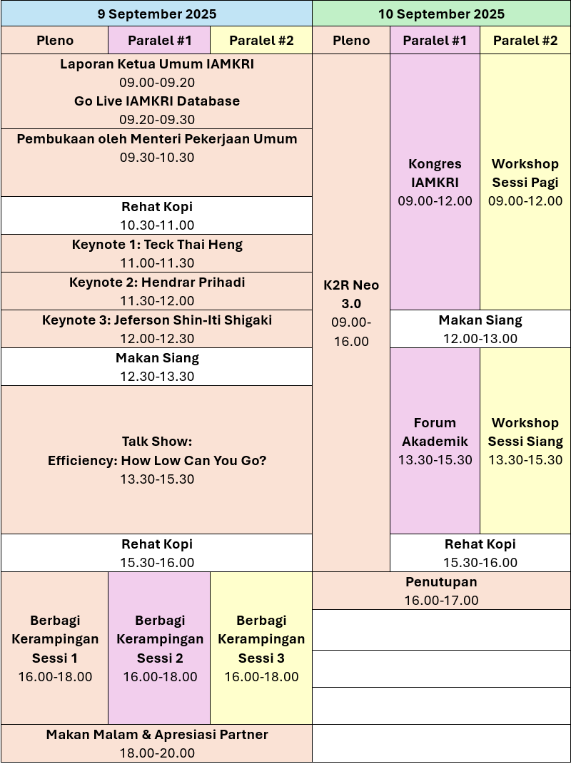 Presentasi dari akademisi dan praktisi terkait dengan pengalamannya dalam mengimplementasikan konstruksi ramping. Terdapat 3 sesi paralel dengan total 24 pembicara. Total waktu setiap pembicara 15 menit, dengan waktu presentasi 10 menit dan tanya jawab 5 menit.